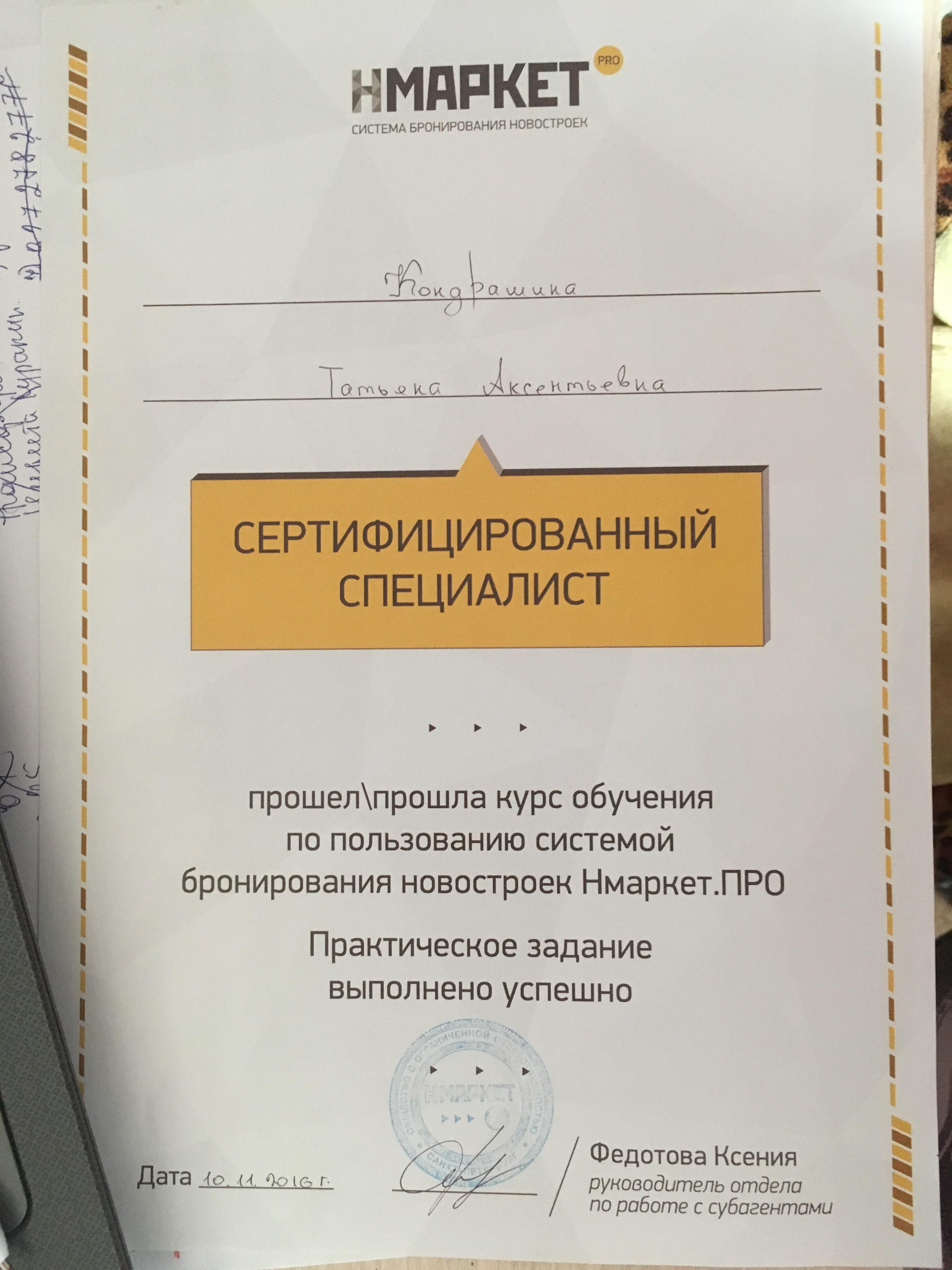 Татьяна, спасибо Вам большое за организацию сдачи экзамена! Все очень оперативно. Желаю Вам удачи и отличных клиентов!