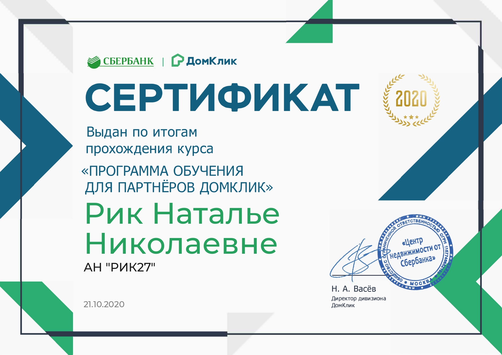 Образование: юридическое и экономическое. Опыт работы : - руководитель ДО в Сбербанке (2010-2015 гг) - начальник отдела продаж и обслуживания ВТБ24 (2015 г), - эксперт по работе с недвижимостью АН "Новый Атлант", г. Хабаровск (2015-2016 гг) - с 2017 г. директор АН "РИК27" , г. Хабаровск /г. Москва