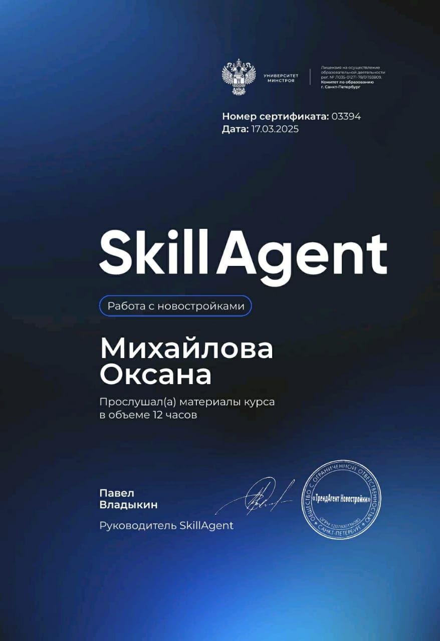 Оксана весьма внимательный исполнитель, наделена тактичными и дипломатичными навыками, которые искусно применяет в своей работе. Бюрократические моменты преодолели с помощью Оксаны за считанные минуты.