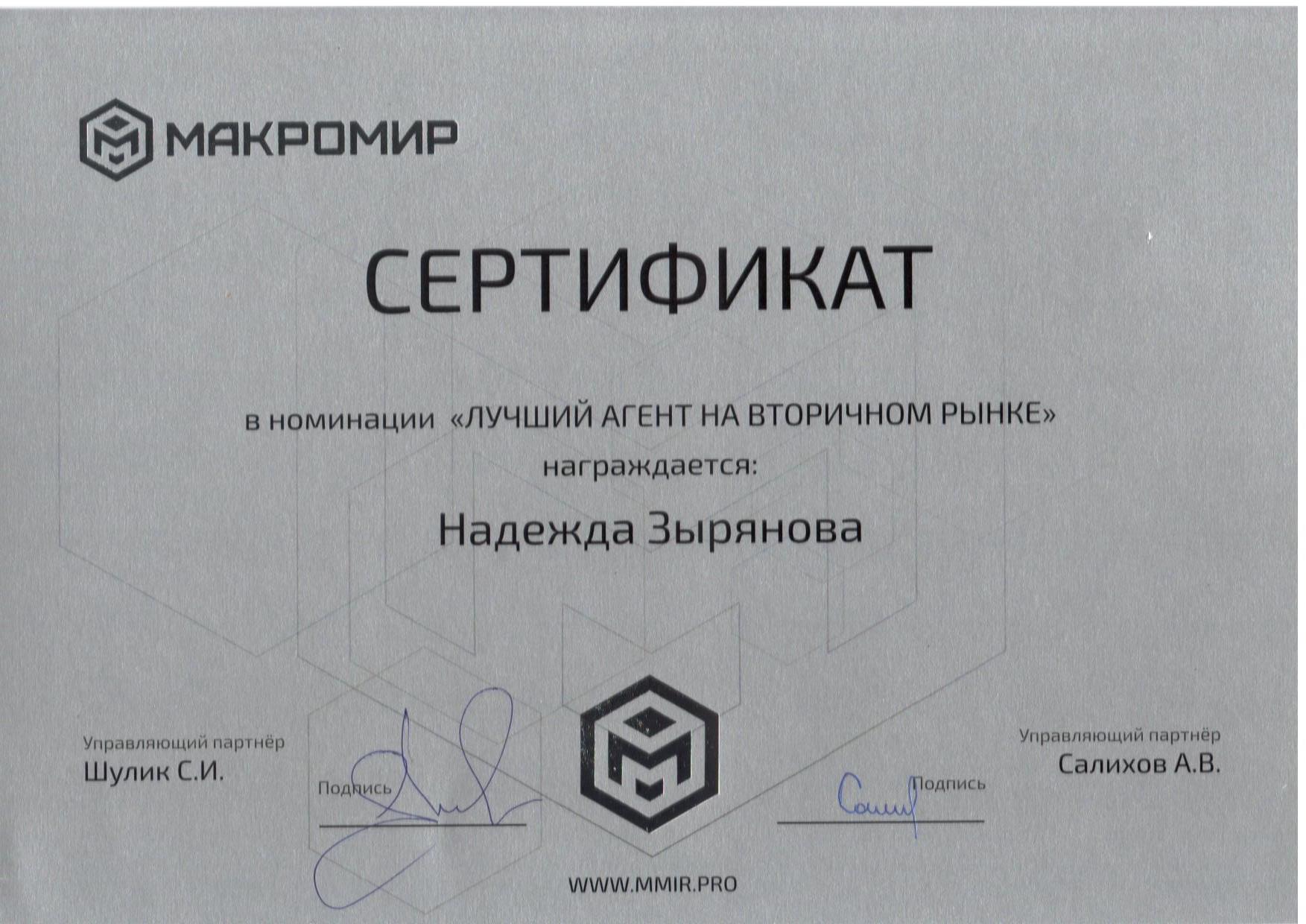 Прошел год,как купила жилье.Хочу выразить огромную благодарность Надежде,она настоящий профессионал своего дела,отвечала на все вопросы,помогала со всеми документами,рекомендую всем,не пожалеете,обращайтесь в компанию макромир,к агенту Надежде Зыряновой!