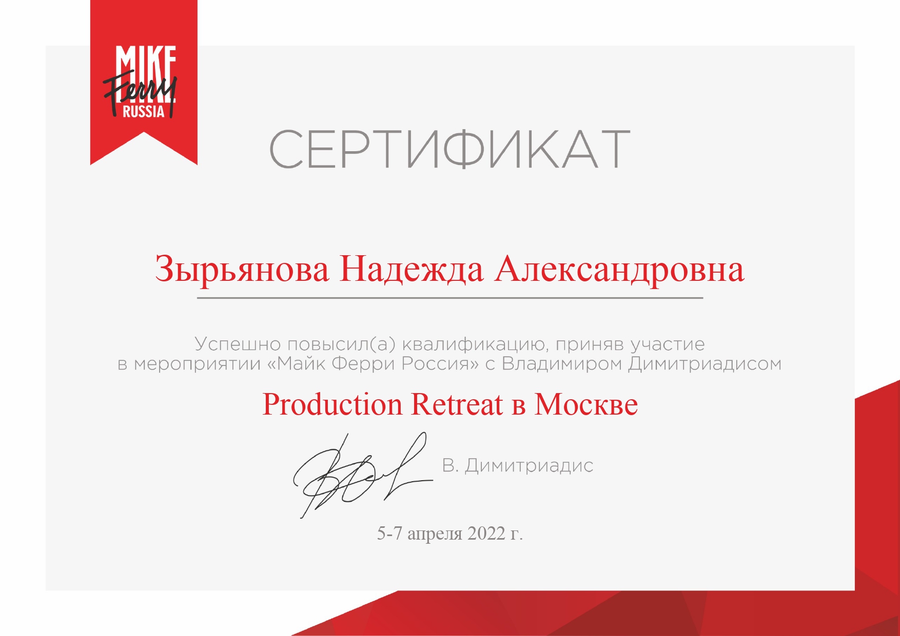 Добрый день! Выражаю свою благодарность Надежде за профессионализм и отличную работу!!! Все прошло четко и на высоком уровне!!!