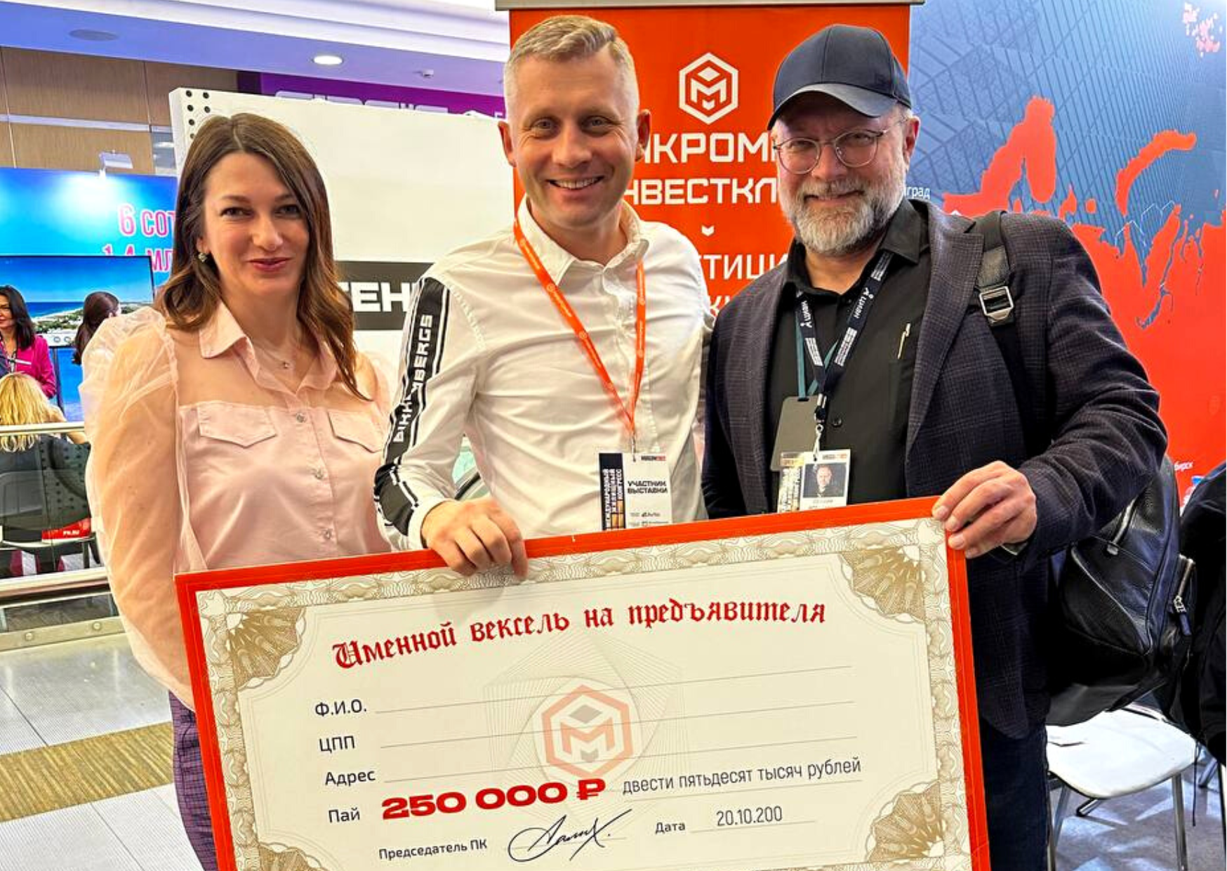 Мы не только получали подарки, но и дарили собственные! На стенде компании был разыгран и вручен сертификат номиналом 250 000 рублей, позволяющий инвестировать в один из новых проектов недвижимости Макромира!