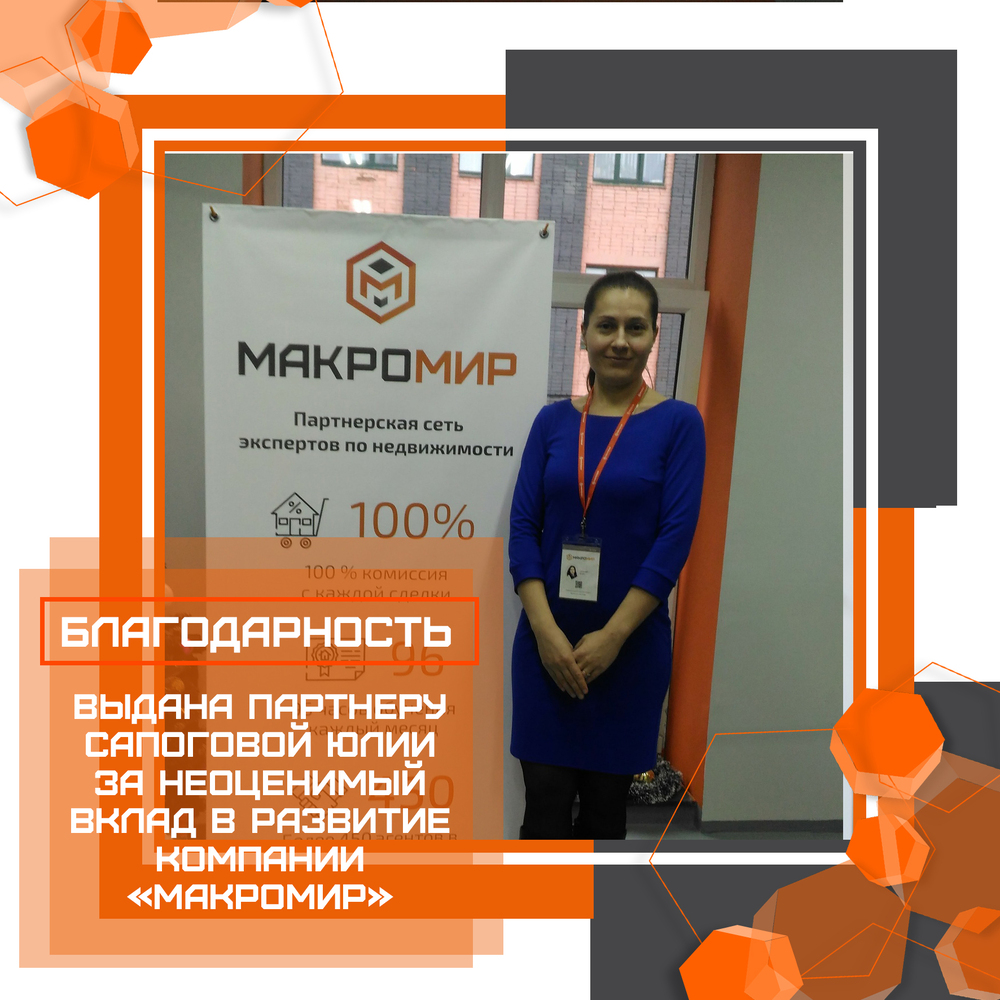 Мы благодарны каждому сотруднику, и каждому партнёру, кто верит в нас и поддерживает нас в развитии! Сейчас как никогда важно быть вместе и делать друг друга сильнее. Партнёрскую сеть «Макромир» на данный момент представляют 640 экспертов рынка недвижимости. И даже сейчас количество экспертов с каждым днём становится всё больше. Во многом - это заслуга наших партнёров.
